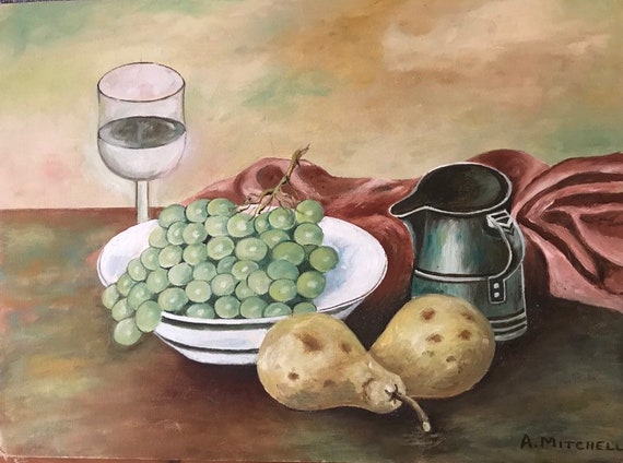 Vintage Still Life Painting 1940s Oil Fruit And Wine Etsy Canada